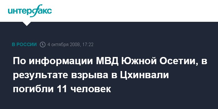 По информации МВД Южной Осетии, в результате взрыва в Цхинвали погибли 11 человек