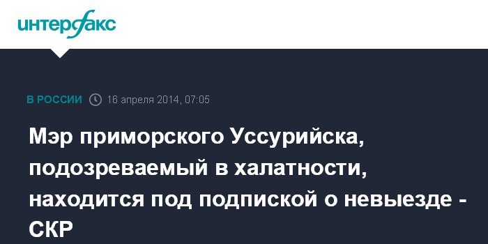 Как сообщалось ранее, следствие в Приморье возбудило уголовное дело против главы администрации Уссурийска по ч. 1 ст. 293 УК РФ ("халатность").