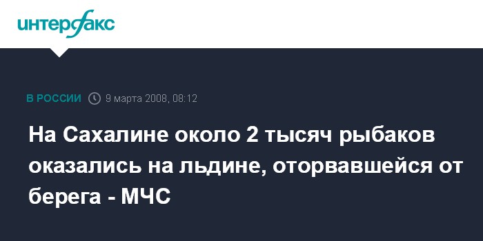 Южно-Сахалинск. 9 марта. ИНТЕРФАКС-ДАЛЬНИЙ ВОСТОК - На юго-востоке Сахалина в заливе Мордвинова в воскресенье от берегового припая оторвало льдину, на которой, по предварительным данным, находится около 2 тысяч рыбаков-любителей.