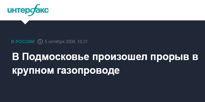 Москва. 5 октября. INTERFAX.RU - Прорыв газопровода зафиксировано рано утром в воскресенье в Московской области, сообщил "Интерфаксу" источник в правоохранительных органах.