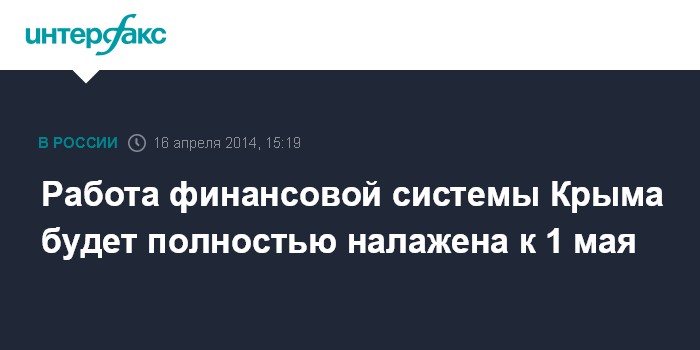 Работа финансовой системы Крыма будет полностью налажена к 1 мая