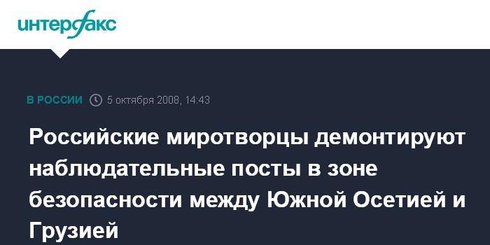 Москва. 5 октября. INTERFAX.RU - Российские миротворцы в соответствии с планом Медведева-Саркози начали демонтаж наблюдательных постов в зоне безопасности между Южной Осетией и Грузией, заявил "Интерфаксу" в воскресенье помощник главкома Сухопутными войсками полковник Игорь Конашенков.