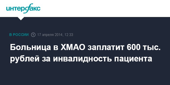 Больница в ХМАО заплатит 600 тыс. рублей за инвалидность пациента