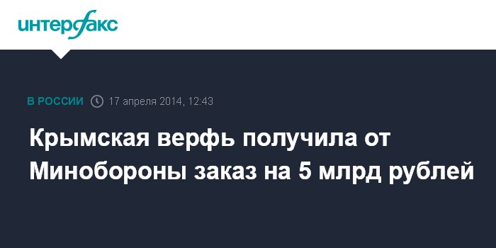 Москва. 17 апреля. INTERFAX.RU - Российское министерство обороны разместило крупный заказ на одной из верфей Крыма, сообщил в четверг президент Владимир Путин.