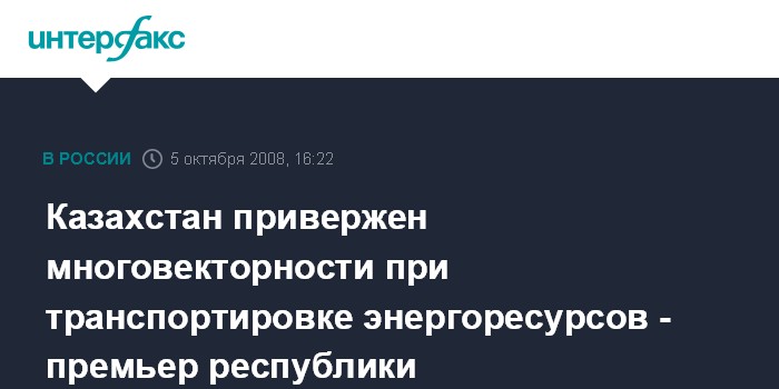 Казахстан привержен многовекторности при транспортировке энергоресурсов - премьер республики