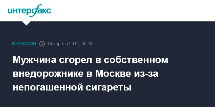 Мужчина сгорел в собственном внедорожнике в Москве из-за непогашенной сигареты