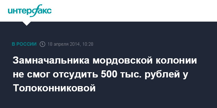 Замначальника мордовской колонии не смог отсудить 500 тыс. рублей у Толоконниковой