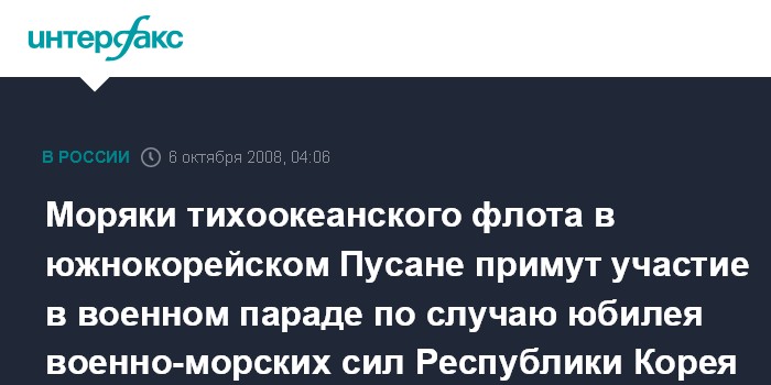 Моряки тихоокеанского флота в южнокорейском Пусане примут участие в военном параде по случаю юбилея военно-морских сил Республики Корея