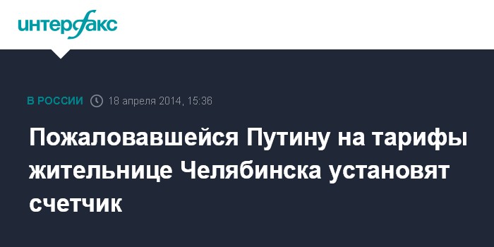 Пожаловавшейся Путину на тарифы жительнице Челябинска установят счетчик