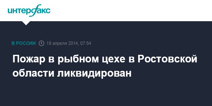 Ростов-на-Дону. 19 апреля. ИНТЕРФАКС-ЮГ - Пожарные ликвидировали возгорание в рыбном цехе в селе Николаевка Неклиновского района Ростовской области, сообщили агентству "Интерфакс-Юг" в пресс-службе Южного регионального центра МЧС РФ.
