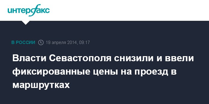 Москва. 19 апреля. INTERFAX.RU - Руководство Севастопольской городской государственной администрации и директоры автотранспортных предприятий, перевозящих пассажиров по северной стороне города в пятницу подписали меморандум, устанавливающий фиксированные цены на перевозки пассажиров.