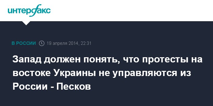 Запад должен понять, что протесты на востоке Украины не управляются из России - Песков