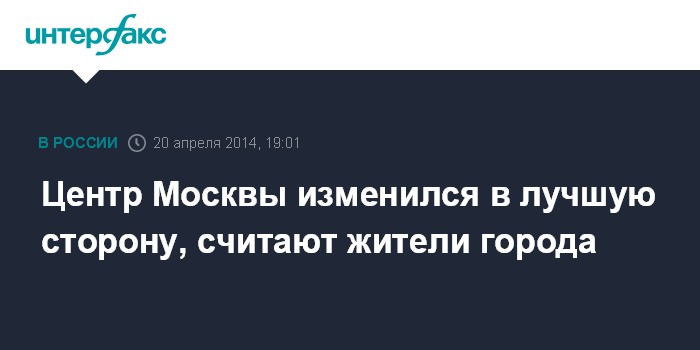 Москва. 20 апреля. INTERFAX.RU - Почти две трети москвичей отмечают позитивные изменения, произошедшие в центре столицы за последние два-три года, выяснили социологи фонда "Общественное мнение".