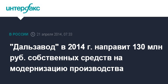"Дальзавод" в 2014 г. направит 130 млн руб. собственных средств на модернизацию производства