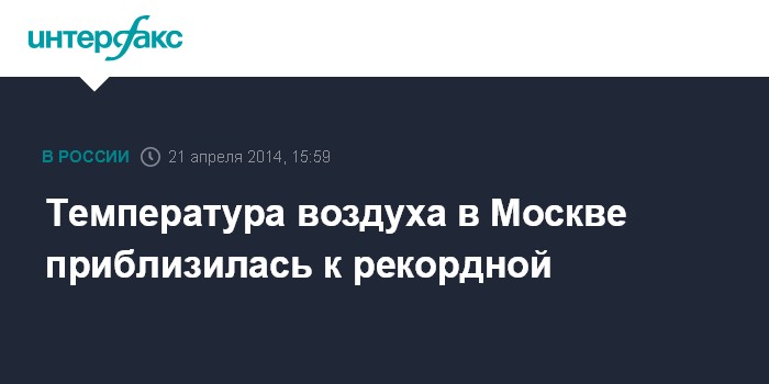 "В 15:00 на базовой метеостанции "ВВЦ" зафиксирована температура в 22,5 градуса при том, что максимум для 21 апреля - плюс 23,9 градусов - был зафиксирован в 1995 году", - заявил собеседник агентства.