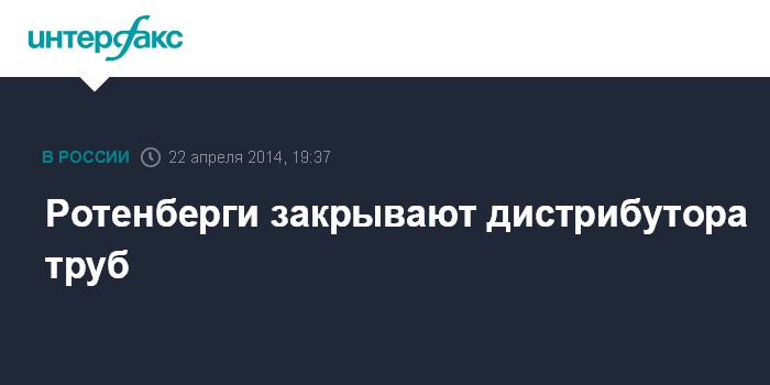 Москва. 22 апреля. INTERFAX.RU - Братья Ротенберги закрывают дистрибутора труб большого диаметра "Северный европейский трубный проект" (СЕТП), сообщил Агентству газовой информации (АГИ) представитель Ротенбергов Андрей Батурин.