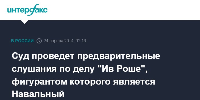 Москва. 24 апреля. INTERFAX.RU - Замоскворецкий суд Москвы в четверг приступит к рассмотрению уголовного дела в отношении оппозиционера Алексея Навального и его брата Олега, обвиняемых в мошенничестве и легализации денежных средств компании "Ив Роше".