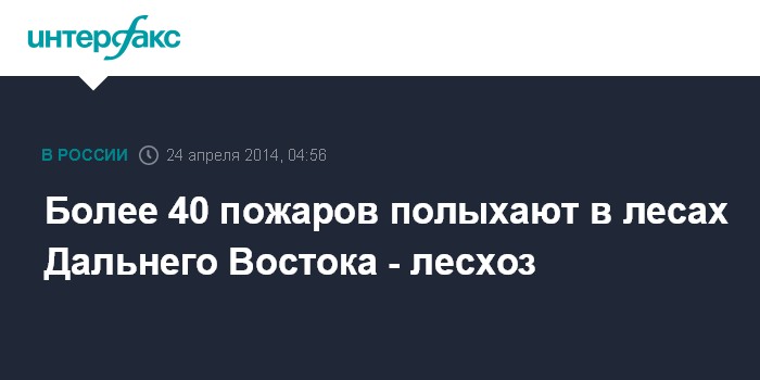 Владивосток. 24 апреля. INTERFAX.RU - За истекшие сутки на территории Дальнего Востока лесные пожары действовали в четырех его субъектах на площади более четырех тыс. га, почти вся из которой приходится на Амурскую область.