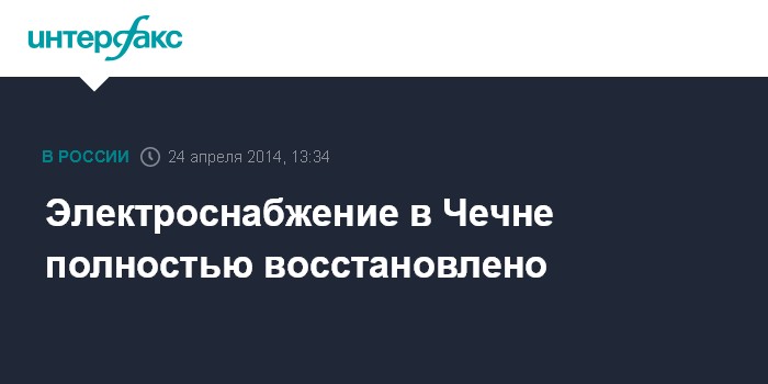 Москва. 24 апреля. INTERFAX.RU - Энергетики в четверг восстановили электроснабжение в населенных пунктах Урус-Мартановского района Чеченской республики, которые накануне были обесточены, сообщил начальник департамента по связям с общественностью МРСК Северного Кавказа Виталий Струговец.