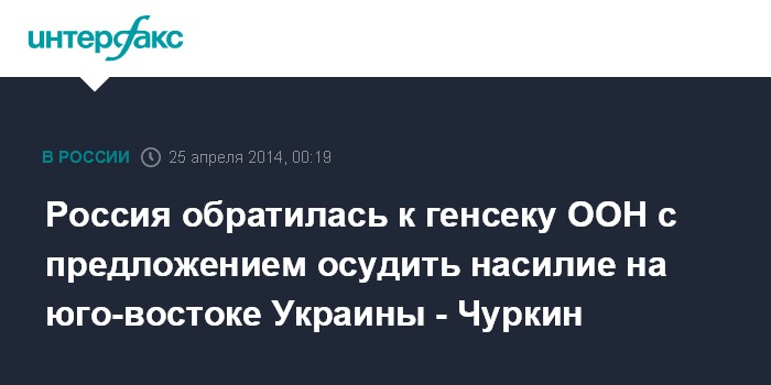Россия обратилась к генсеку ООН с предложением осудить насилие на юго-востоке Украины - Чуркин