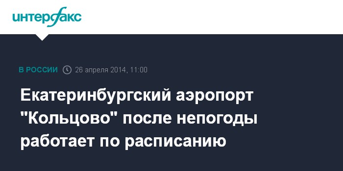Москва. 26 апреля. INTERFAX.RU - Работа аэропорта "Кольцово" в Екатеринбурге, которая накануне была нарушена из-за сильного ветра, полностью восстановлена, сообщает пресс-служба ГУ МЧС России по Свердловской области в субботу.