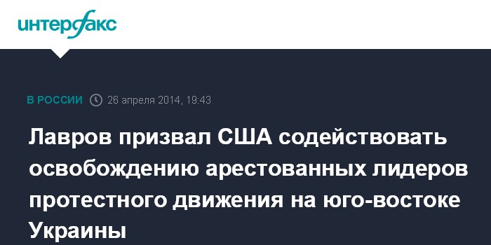 Лавров призвал США содействовать освобождению арестованных лидеров протестного движения на юго-востоке Украины