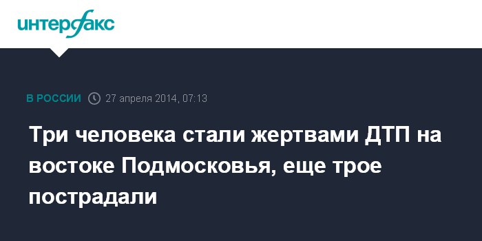Москва. 27 апреля. INTERFAX.RU - Три человека погибли в ДТП на востоке Подмосковья, сообщили "Интерфаксу" в пресс-службе ГУ МВД России по Московской области.