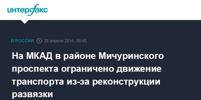 Москва. 29 апреля. INTERFAX.RU - В связи с реконструкцией развязки МКАД с Мичуринским проспектом на западе МКАД на две ночи введены ограничения в движении транспорта, сообщили "Интерфаксу" в пресс-службе Управления ГИБДД Москвы.