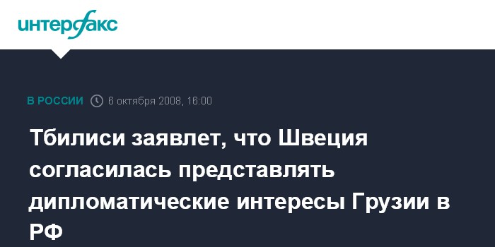 Тбилиси заявлет, что Швеция согласилась представлять дипломатические интересы Грузии в РФ