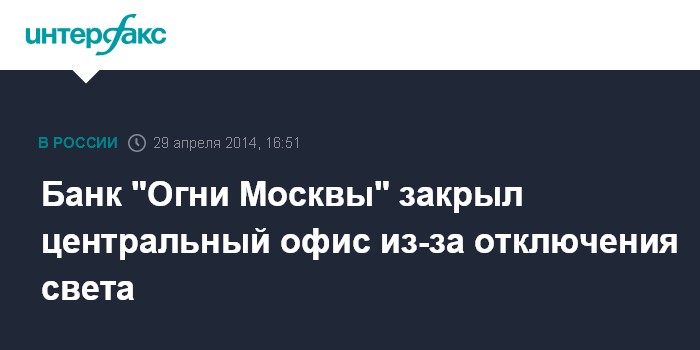 Банк "Огни Москвы" закрыл центральный офис из-за отключения света
