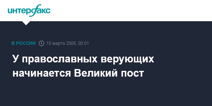 Москва. 10 марта. ИНТЕРФАКС - Православные верующие вступают в период самого строгого - Великого - поста. Он продлится семь недель и завершится перед Пасхой, которая в этом году приходится на 27 апреля.
