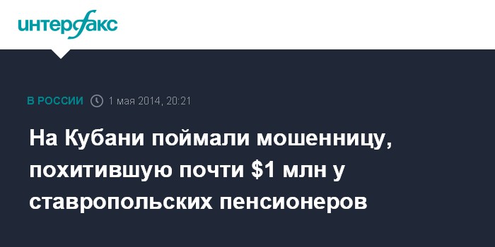 На Кубани поймали мошенницу, похитившую почти $1 млн у ставропольских пенсионеров