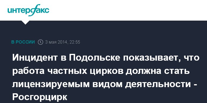 Инцидент в Подольске показывает, что работа частных цирков должна стать лицензируемым видом деятельности - Росгорцирк