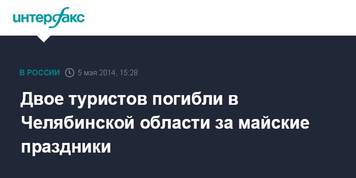 Москва. 5 мая. INTERFAX.RU - С 1 по 3 мая в Челябинской области погибли двое туристов. Следственные органы Челябинской области устанавливают обстоятельства их смерти, сообщило областное следственное управление СК России в понедельник.