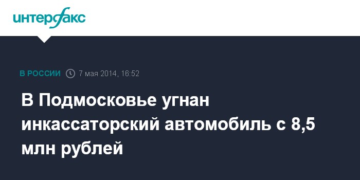 Ранее в среду "Интерфаксу" сообщили в пресс-службе ГУ МВД России по Московской области, что в поселке Черкизово было совершено разбойное нападение на инкассаторскую машину марки Volkswagen. Двое неизвестных в масках угнали автомобиль и похитили деньги. Позднее злоумышленники бросили машину в 10 км от места преступления и скрылись на двух автомобилях без номеров.