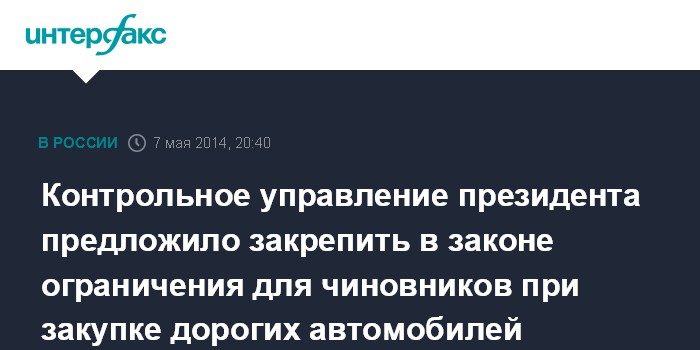 Москва. 7 мая. INTERFAX.RU - Контрольное управление президента предложило нормативно закрепить ограничения для чиновников при госзакупке дорогих автомобилей и обустройстве роскошных кабинетов, заявил глава управления Константин Чуйченко.