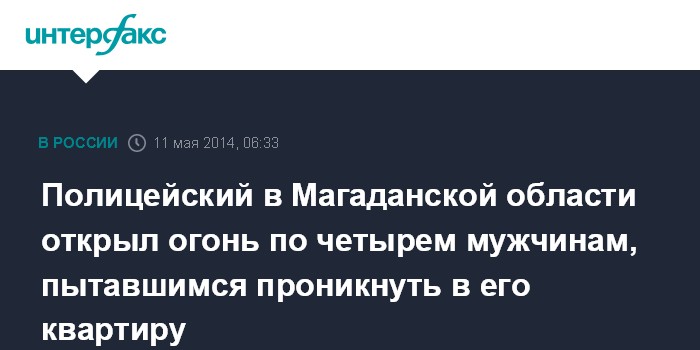 Полицейский в Магаданской области открыл огонь по четырем мужчинам, пытавшимся проникнуть в его квартиру
