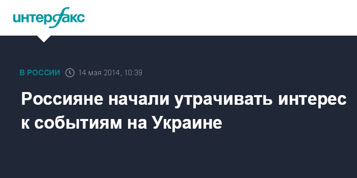 По данным проведенного в апреле опроса, постоянно следят за событиями на Украине 30 процентов россиян, в то время как в марте глубокий интерес к происходящему проявляли 39 процентов опрошенных. Еще 47 процентов респондентов заявили, что интересуются происходящим время от времени.