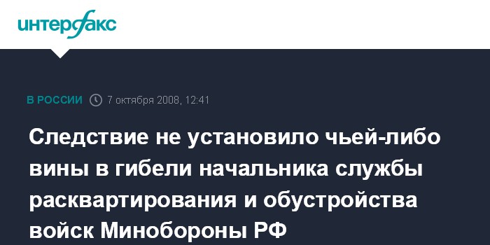 Следствие не установило чьей-либо вины в гибели начальника службы расквартирования и обустройства войск Минобороны РФ