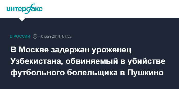 В Москве задержан уроженец Узбекистана, обвиняемый в убийстве футбольного болельщика в Пушкино
