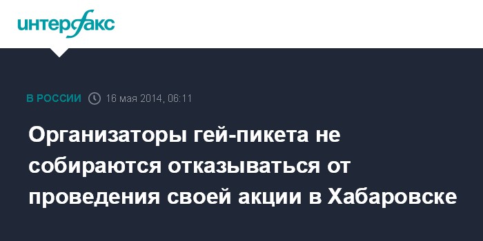 Ранее сообщалось, что власти Хабаровска призывают организаторов гей-пикета отказаться от его проведения в связи с крайне негативной общественной реакцией.