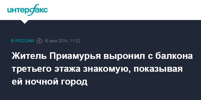 Житель Приамурья выронил с балкона третьего этажа знакомую, показывая ей ночной город