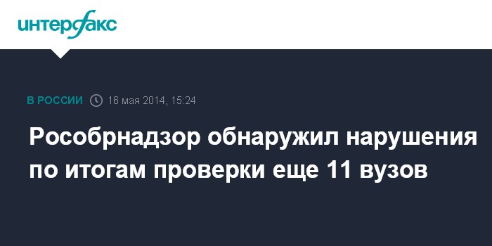 Москва. 16 мая. INTERFAX.RU - Рособрнадзор в период с 28 апреля по 8 мая провел проверки 11 государственных и негосударственных вузов, сообщает пресс-служба ведомства.