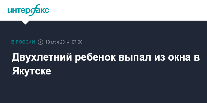 Москва. 19 мая. INTERFAX.RU - Малолетний ребенок умер в результате падения из окна четвертого этажа в Якутске, сообщает в понедельник пресс-служба регионального СУ СК РФ.