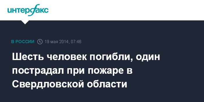 Москва. 19 мая. INTERFAX.RU - Пожар произошел в частном доме в Екатеринбурге, в результате шесть человек погибли, еще один пострадал, сообщает пресс-служба СУ СКР по Свердловской области.