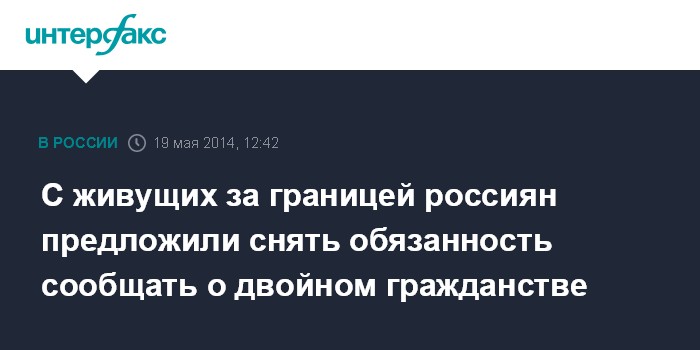 Москва. 19 мая. INTERFAX.RU - Профильный комитет предложил Госдуме не распространять обязанность уведомлять о наличии второго гражданства на российских граждан, постоянно проживающих за пределами страны. Такое решение принято при подготовке соответствующей инициативы ко второму чтению на заседании комитета по конституционному законодательству и госстроительству в понедельник.