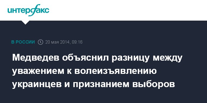 "Но я могу сказать, что в результате выборов, которые будут в мае, часть людей на Украине выскажется за ту или иную кандидатуру. Безусловно, можно с уважением относиться к этой позиции. Является ли это актом признания? Нет, не является", - сказал Медведев.