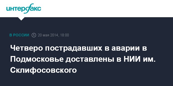 Четверо пострадавших в аварии в Подмосковье доставлены в НИИ им. Склифосовского