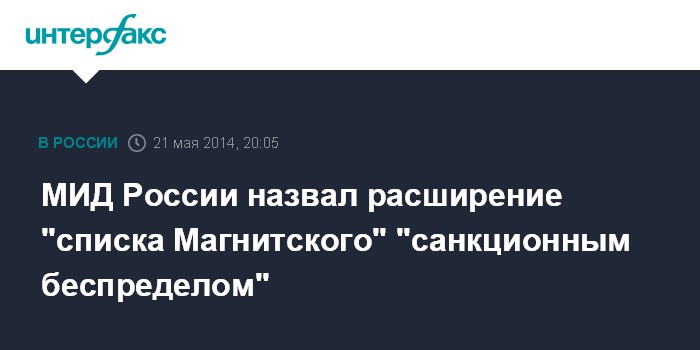 Москва. 21 мая. INTERFAX.RU - В МИД РФ обещают не оставить без ответа расширение "списка Магнитского" и руководствоваться при этом не только принципом взаимности, но и соображениями справедливости.