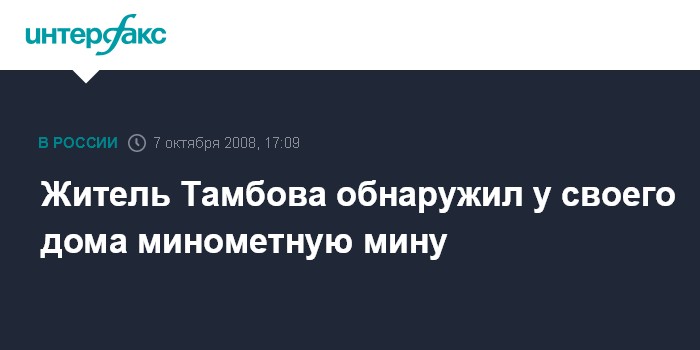 Москва. 7 октября. INTERFAX.RU - В Тамбове житель улицы Правды в понедельник вечером раскопал минометную мину возле своего дома, сообщили "Интерфаксу" во вторник в пресс-службе УВД. По словам собеседника агентства, мина была обнаружена в земле на глубине примерно полтора метра.